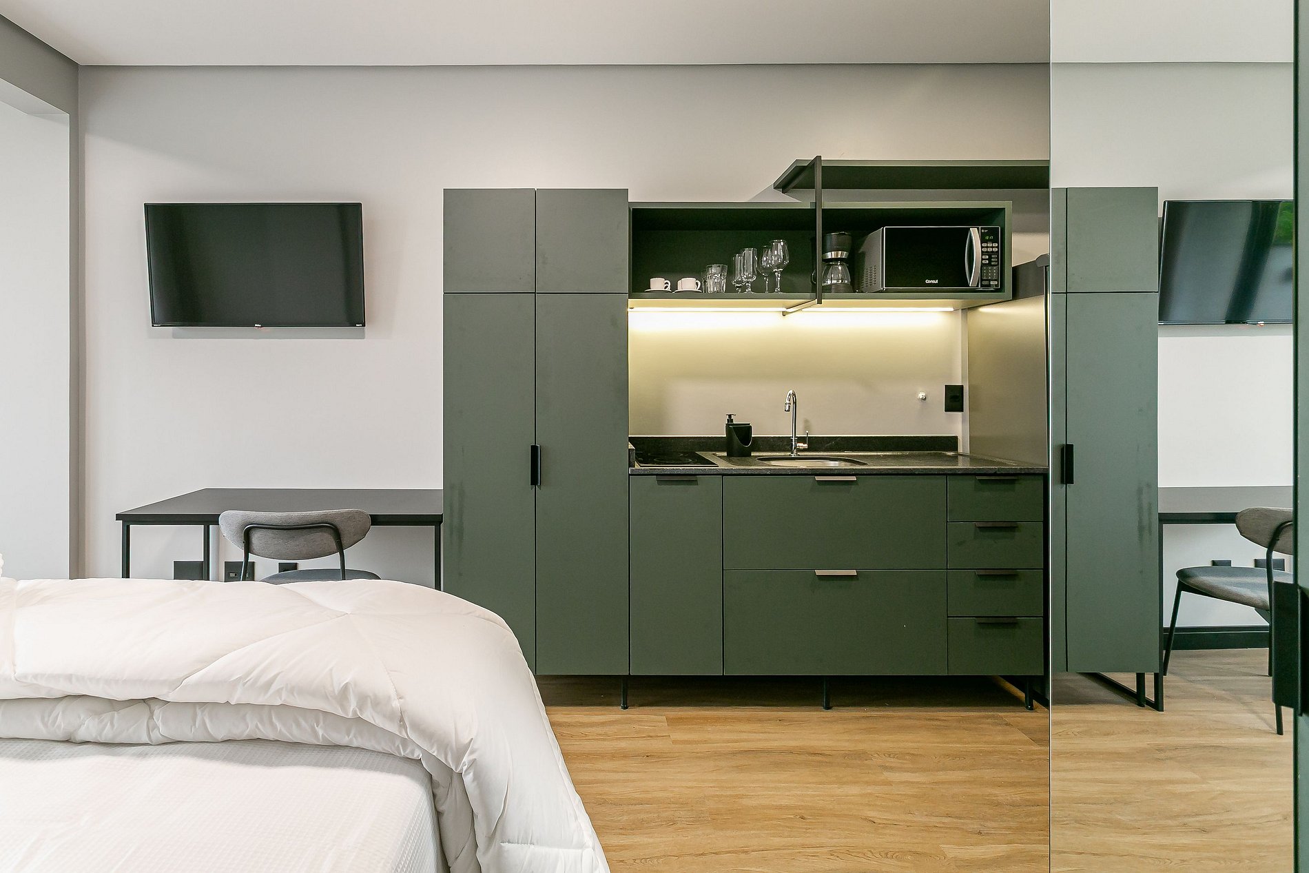 - Temos diferentes espaços nesta propriedade, todos eles projetados para você ter uma ótima estadia — enquanto nosso estilo é consistente, alguns aspectos mínimos podem mudar, como exemplo um vaso de flor ou podemos ter retirado o tapete para higienização.