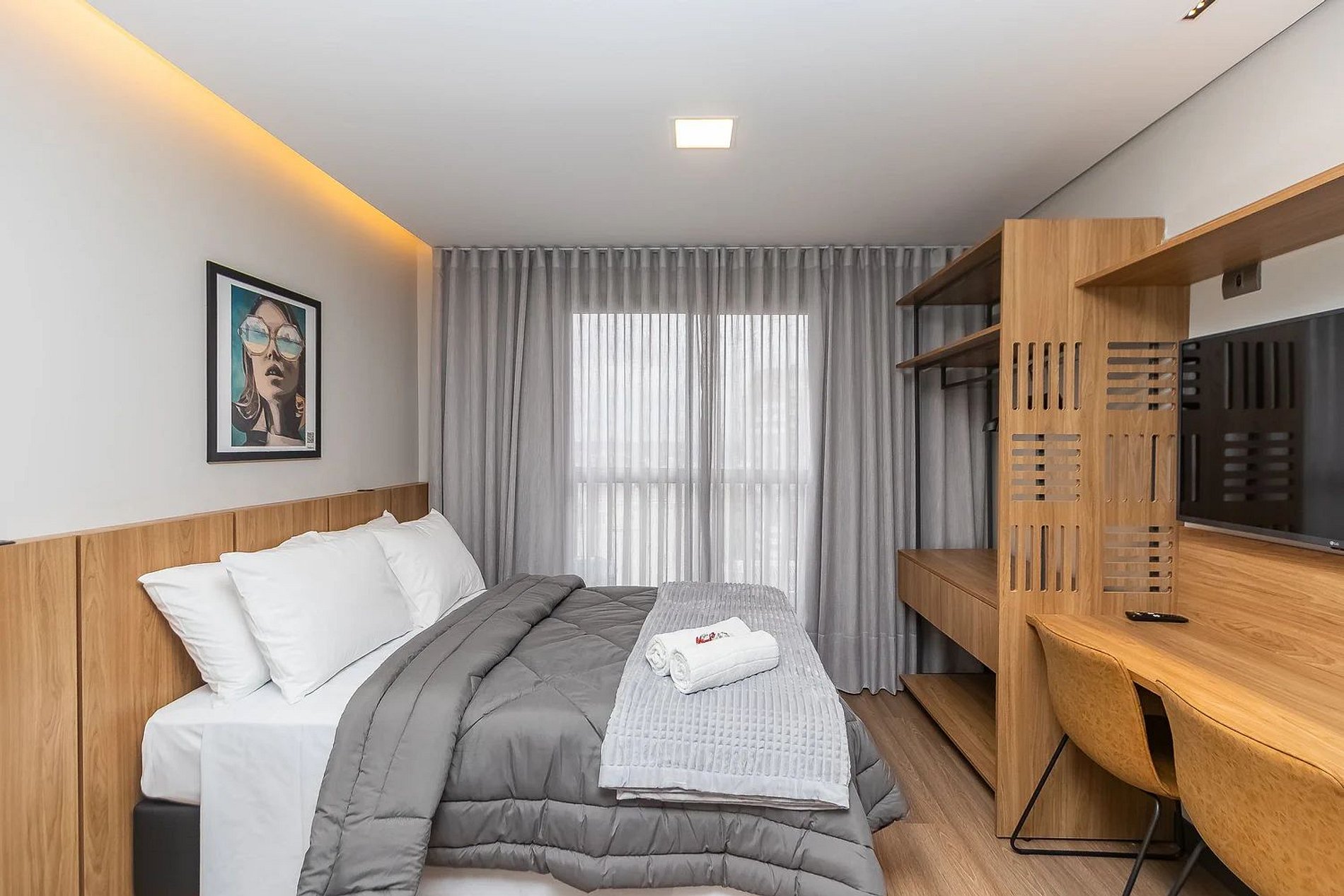 - Temos diferentes espaços nesta propriedade, todos eles projetados para você ter uma ótima estadia — enquanto nosso estilo é consistente, alguns aspectos mínimos podem mudar, como exemplo um vaso de flor ou podemos ter retirado o tapete para higienização.
