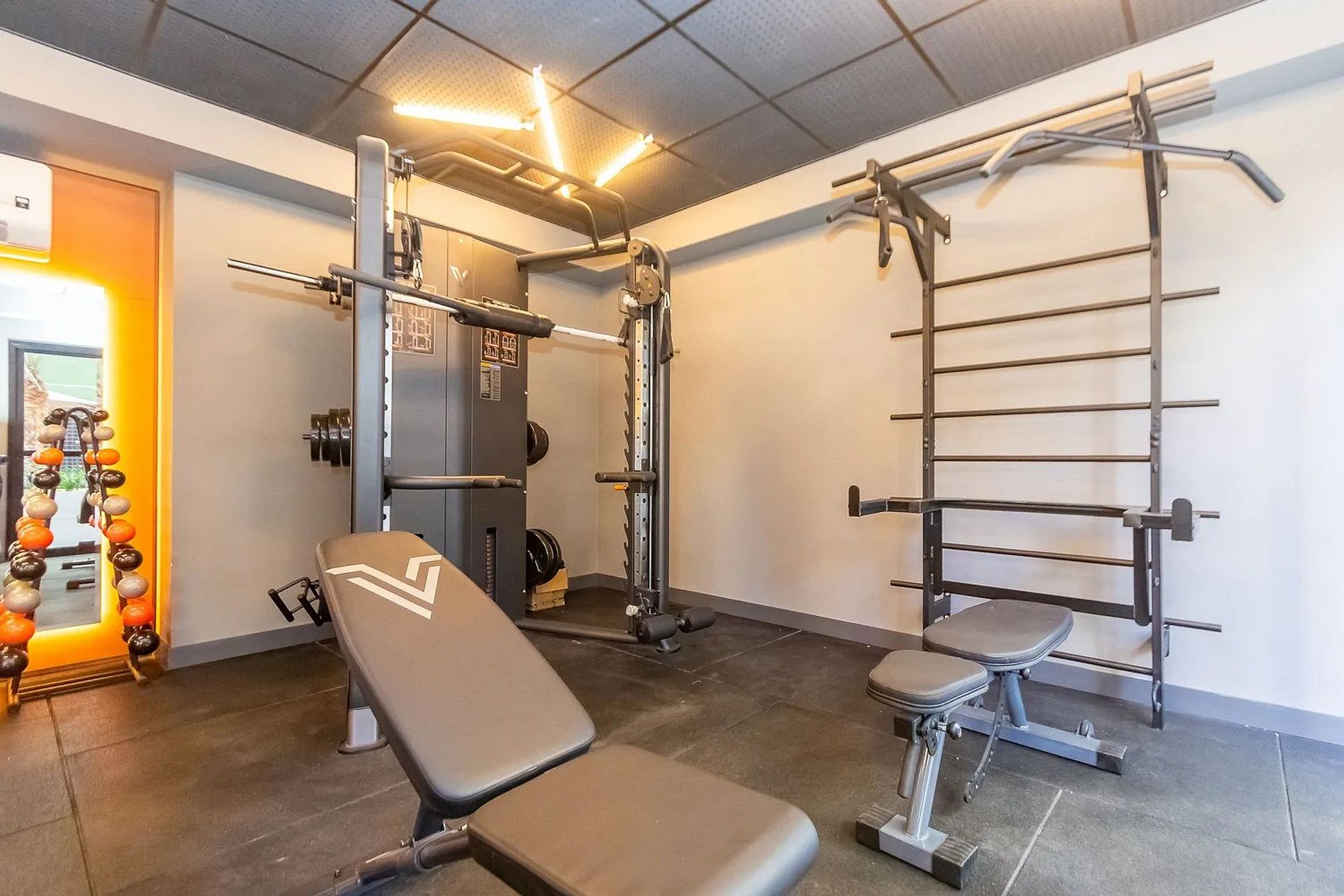 Entre as amenidades exclusivas, o edifício conta com uma lavanderia paga, equipada com máquinas de última geração, proporcionando mais comodidade aos moradores, sem a necessidade de sair do prédio. Além disso, os moradores e usuários podem usufruir de uma academia moderna, com aparelhos de alta qualidade, ideal para quem busca manter a rotina de exercícios sem precisar sair de casa.